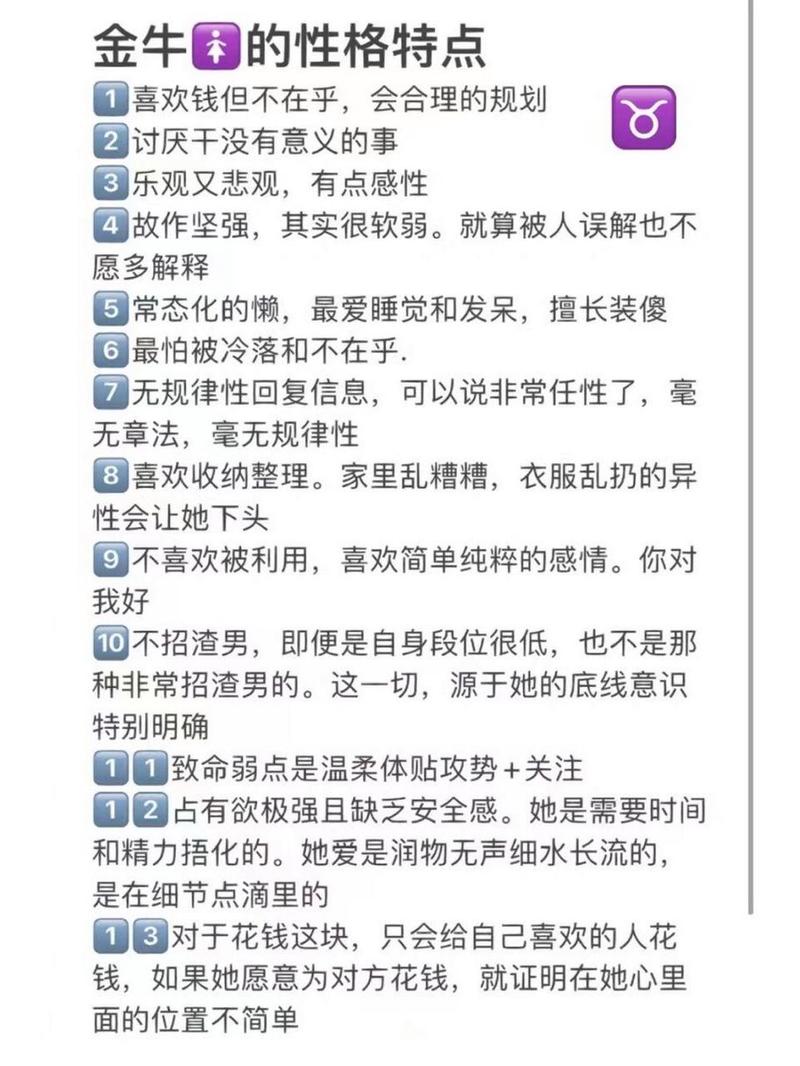 96年金牛座女生的性格特點(diǎn)主要體現(xiàn)在穩(wěn)重、務(wù)實(shí)、忠誠和固執(zhí)等方面。她們?cè)诿鎸?duì)生活和感情時(shí),表現(xiàn)出極強(qiáng)的耐心和自制力,但也存在一些需要克服的弱點(diǎn),如固執(zhí)、保守和慢熱。通過發(fā)揮自己的優(yōu)點(diǎn)和克服弱點(diǎn),金牛座女生能夠?qū)崿F(xiàn)自我完善和成長。