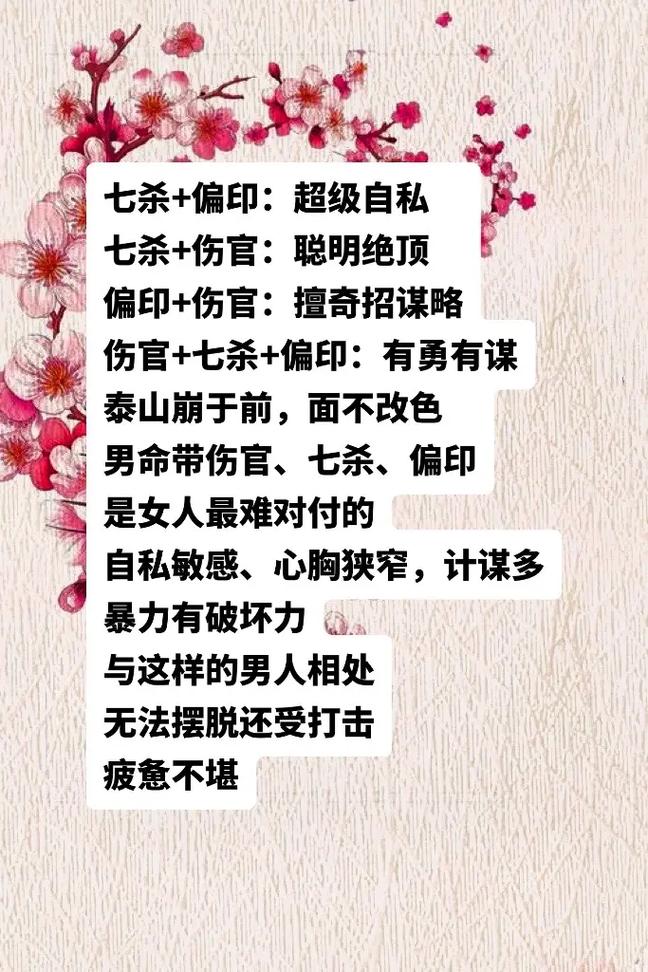 3. 財(cái)運(yùn)較好:偏財(cái)?shù)某霈F(xiàn)通常意味著命主在財(cái)運(yùn)上有著不錯(cuò)的機(jī)遇,能夠捕捉到別人忽視的商機(jī)。七殺和偏財(cái)?shù)慕M合也能帶來(lái)一定的財(cái)富。