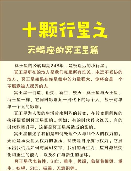 1. 情感深刻且強烈:冥王星在天蝎座的影響使得情感體驗非常深刻,具有強烈的占有欲和控制欲。這種情感的深度和強度往往讓人感到難以捉摸,但也極具吸引力。