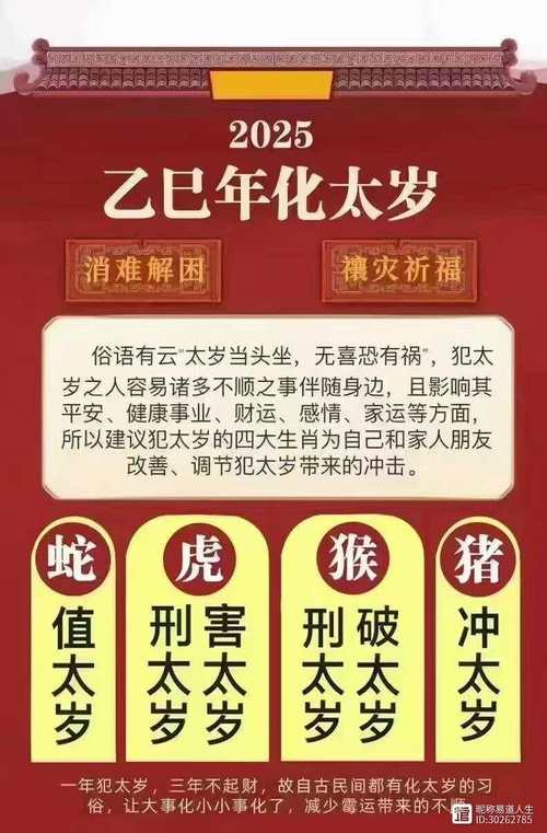 本命年值太歲,需佩戴紅繩、桃木辟邪。