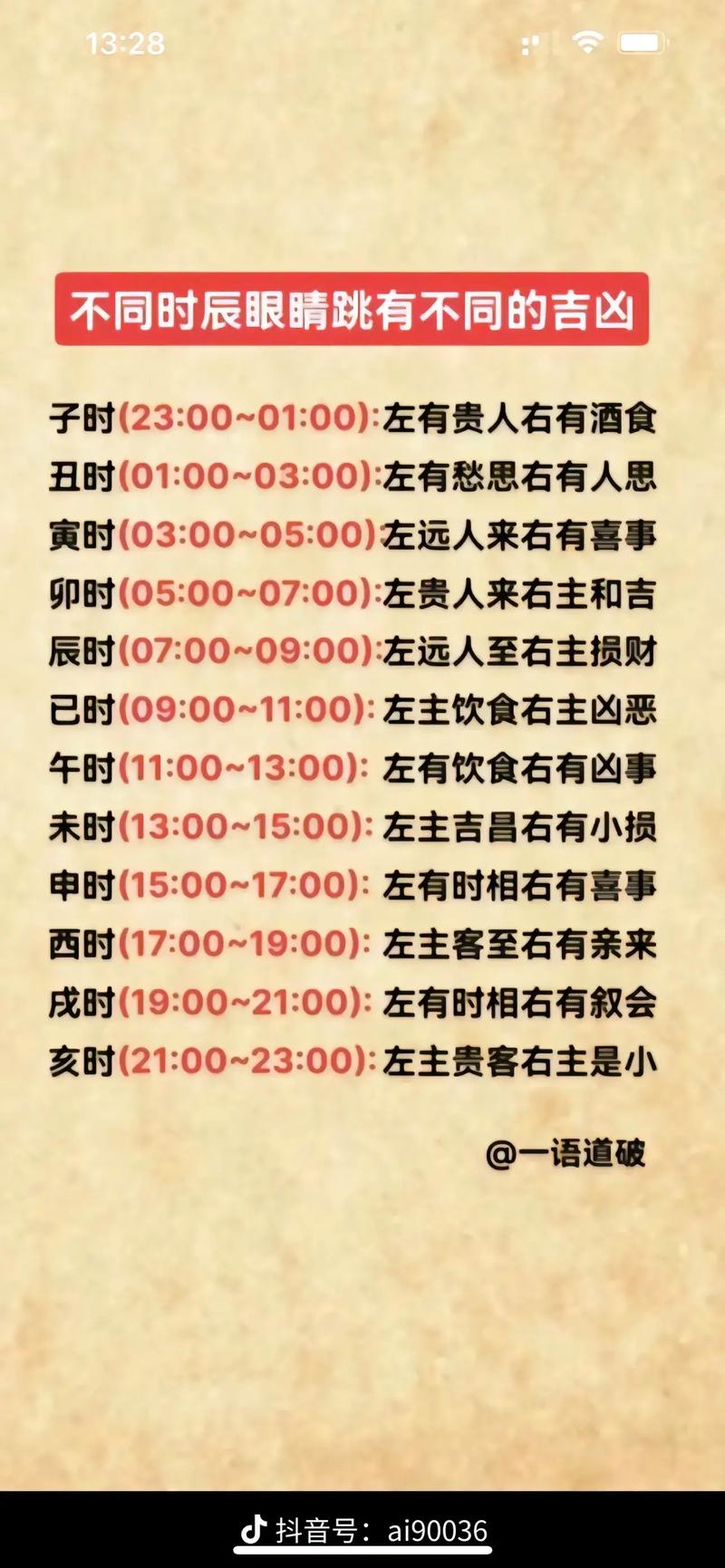 古人還根據(jù)右眼跳動(dòng)的時(shí)間段,對(duì)吉兇征兆進(jìn)行了進(jìn)一步細(xì)化。
