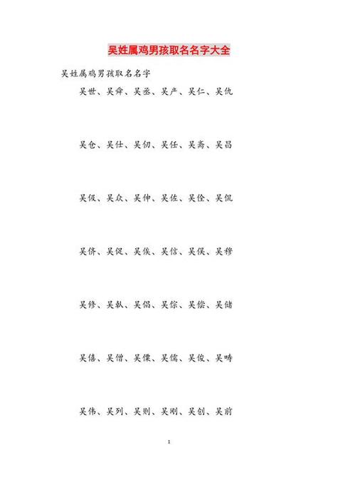 為吳姓雞年出生的寶寶起名是一個(gè)充滿文化和傳統(tǒng)意義的任務(wù)。結(jié)合雞年的特點(diǎn)和吳姓的文化內(nèi)涵,可以選擇出既吉祥又有深意的名字。以下是一些起名建議,供家長(zhǎng)們參考。