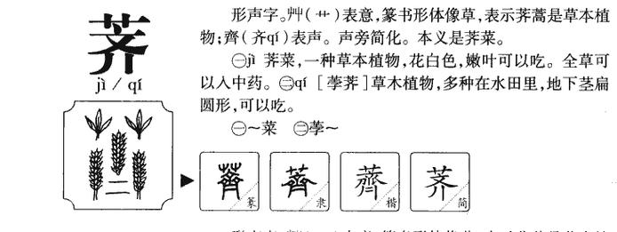薺字取名吉兇測(cè)試圖解大全 薺叫什么音