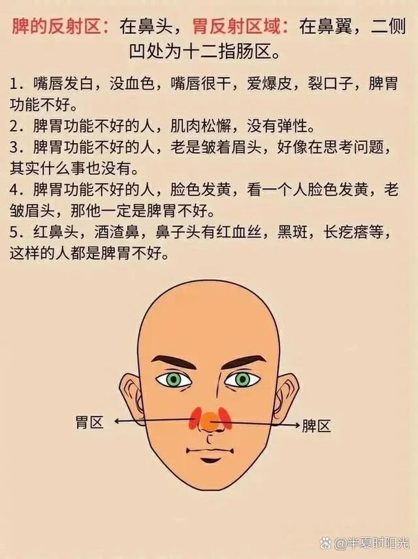 消化系統(tǒng)問(wèn)題:印堂發(fā)黑或發(fā)青、嘴角下垂等可能反映脾胃功能失調(diào)。