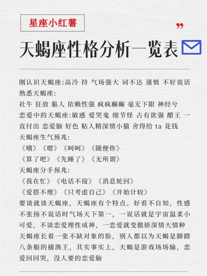 有伴侶天蝎座:與伴侶之間的感情相對穩(wěn)定,但也要不斷地溝通和交流來加深彼此的了解。要學(xué)會傾聽伴侶的想法和感受,以及表達(dá)自己的想法和期望。
