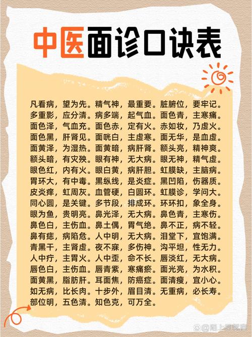 老中醫(yī)通過面相診斷疾病,主要依據中醫(yī)的“望診”方法,觀察面部的色澤、形態(tài)、五官等特征,從而推測臟腑的健康狀況和疾病信息。以下是一些常見的面相診斷方法和其對應的健康問題: