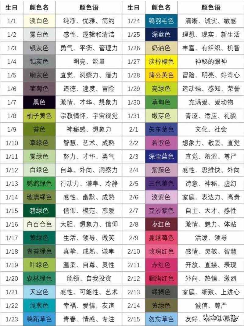 生日顏色占卜是一種古老的預測方法,通過個人的出生日期來確定其幸運顏色和需要注意的顏色。以下是根據(jù)不同出生日期對應的幸運顏色及其吉兇含義。