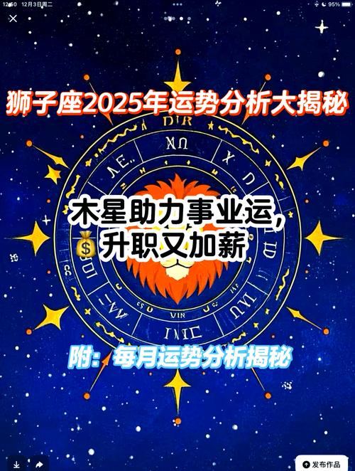 獅子座在2025年確實(shí)迎來(lái)了三喜運(yùn)勢(shì),包括事業(yè)上的晉升、愛(ài)情中的甜蜜以及財(cái)運(yùn)上的豐收。以下是對(duì)獅子座在2025年三喜運(yùn)勢(shì)的詳細(xì)分析。