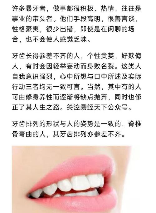 面相學(xué)認(rèn)為,門牙大小與一個(gè)人的性格、運(yùn)勢(shì)息息相關(guān)。相較于門牙大的人,門牙小的人往往有著不同的特點(diǎn)和發(fā)展趨勢(shì)。