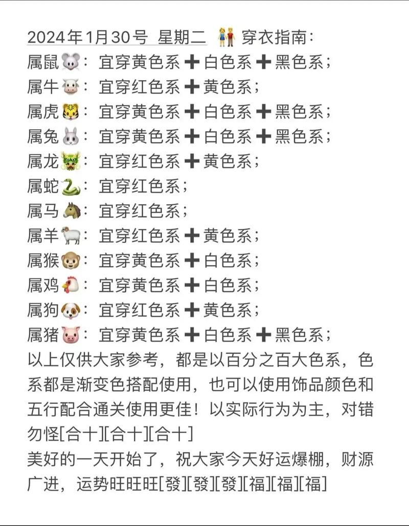 財運(yùn):避開紅色,多穿綠色、藍(lán)色和黑色,有利于財運(yùn)增長,避免破財漏財。