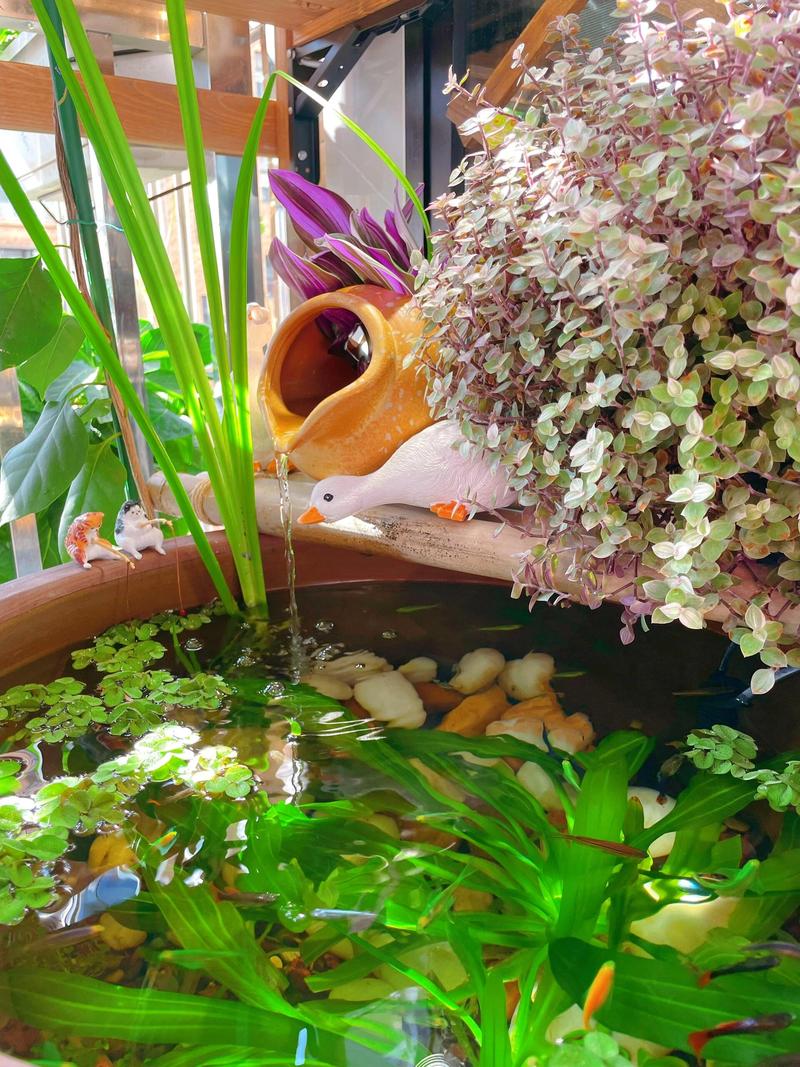養(yǎng)護(hù)管理:定期澆水、施肥和修剪是植物健康生長的關(guān)鍵。需要注意魚缸的清潔和維護(hù),以保持水質(zhì)的清潔。