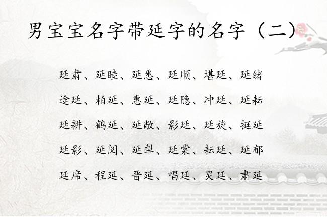 "延"字蘊含著延年益壽、福壽綿長、前途似錦的吉祥含義。用在名字中,寓意著男孩長壽健康、福氣滿滿、事業(yè)有成。
