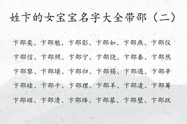 女孩名字示例:卞可顏(可:善良;顏:美麗)、卞雪舒(雪:純潔;舒:舒展)、卞思珮(思:品德;珮:美玉)、卞明娟(明:睿智;娟:柔美)、卞心然(心:內(nèi)心;然:寧?kù)o)。