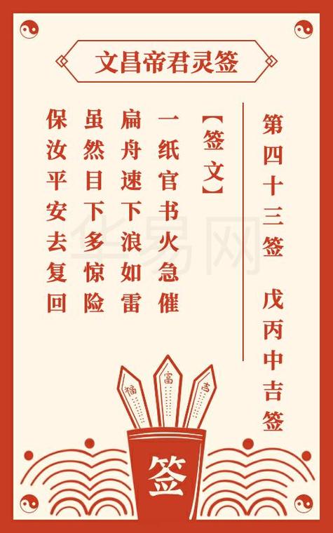還沒(méi)買彩票, 先來(lái)看看自己能不能中獎(jiǎng)。今天,我們就以幽默的視角來(lái)解讀文昌靈簽43簽文,看看簽文里隱藏著什么樣的驚喜。