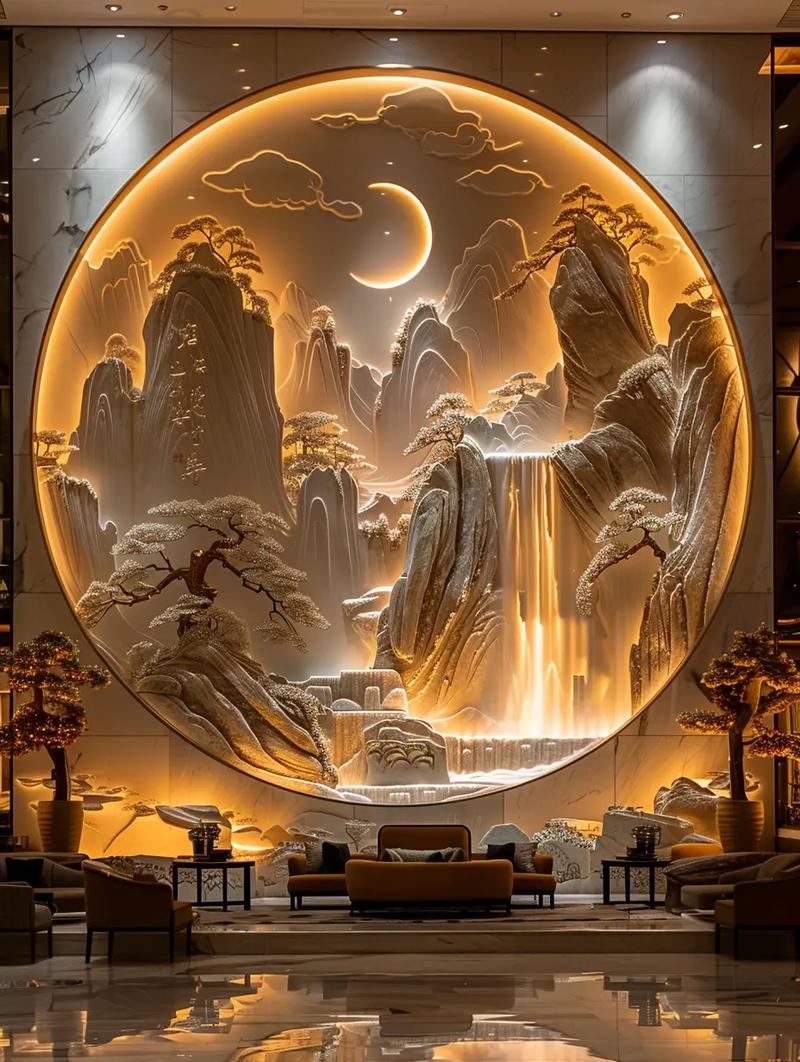 選擇中式風(fēng)水墻時(shí)需要根據(jù)室內(nèi)的整體裝修風(fēng)格和個(gè)人的需求來(lái)進(jìn)行選擇。