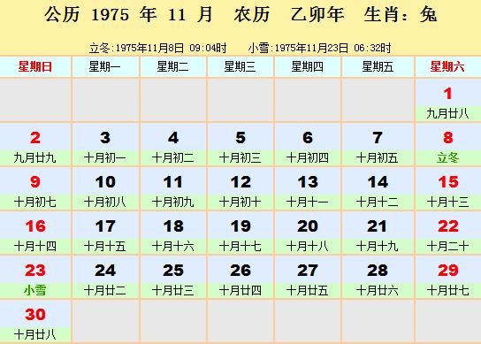 1975年11月17日陰歷是多少歲 1975年全年農(nóng)歷日歷表