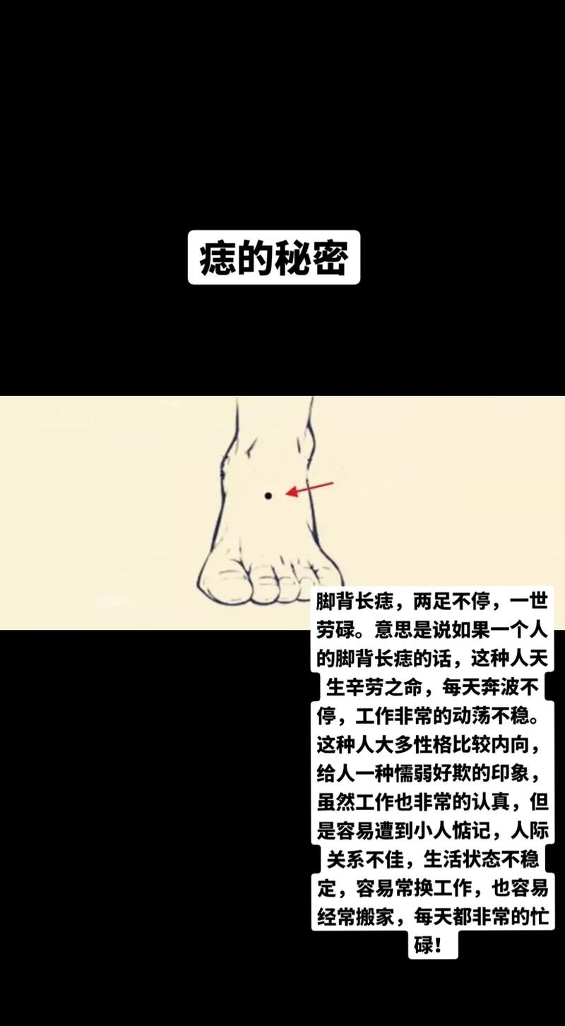 在古代傳統(tǒng)文化中,很多人會(huì)在看相師處尋求生辰八字等預(yù)測(cè)自己的命運(yùn)。而足背痣的位置也被一些人認(rèn)為與命運(yùn)有關(guān)聯(lián),因?yàn)槟_踩著大地,代表腳底下積蓄了很多能量。