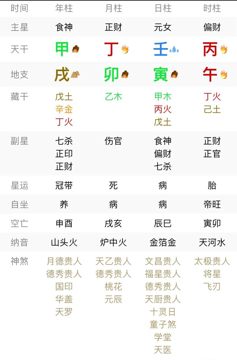 壬午:九鬼妨害,但恐夫妻不睦。坐下財官,無雜氣,多主官貴,丁壬合財,主得妻財或因妻制富。但壬午