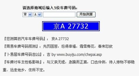 車牌號碼吉兇是指車牌號數(shù)字組合的特殊象征意義。在車主中,很多人相信車牌號碼的吉兇與運勢有關,因此他們會在購車時選擇特定的號碼來為自己和家人帶來好運。而查車牌照吉兇查詢官網(wǎng)則是一個可以幫助車主查詢車牌號碼吉兇的在線工具。在這個網(wǎng)站上,我們可以通過輸入車牌號碼,就能得到有關這個號碼吉兇的詳細解讀。