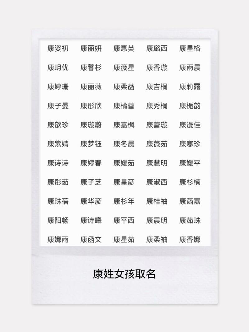 2. 康怡:給人一種優(yōu)雅、舒適的感覺(jué),寓意一生快樂(lè)、和順。