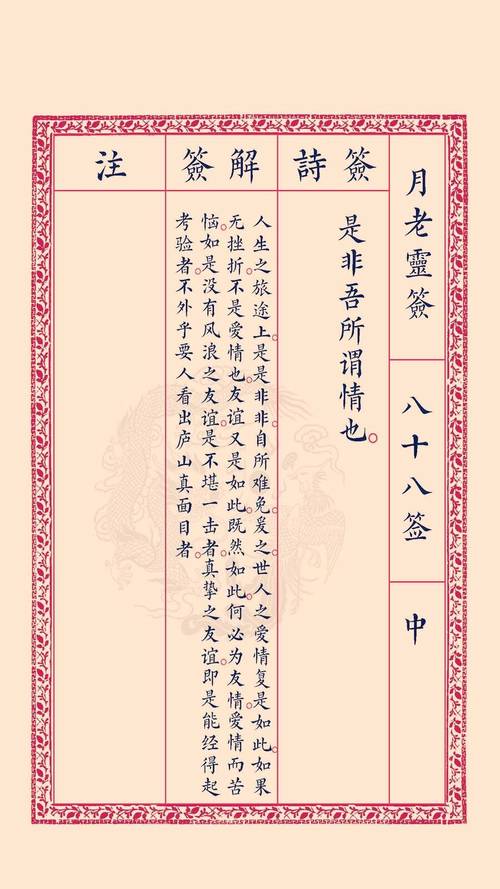 簽文曰:“情深緣淺,終成空。莫要執(zhí)著,放下才能輕松。”
