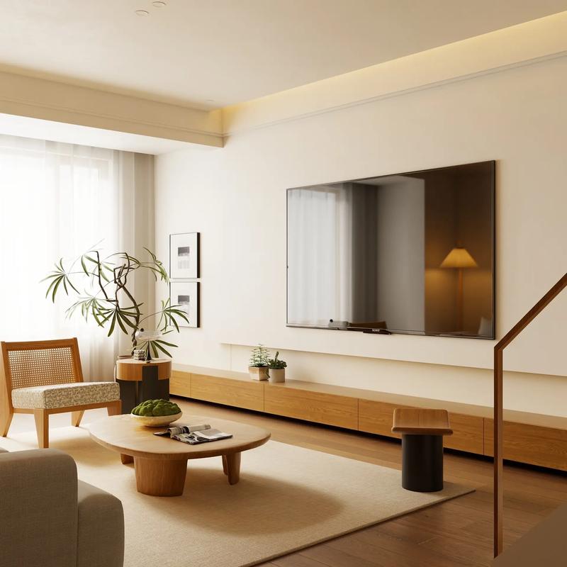 3. 注重自然與寧靜:在客廳中融入自然元素,如竹子、木材和石頭,選擇木質(zhì)家具,保持空間的自然質(zhì)樸。
