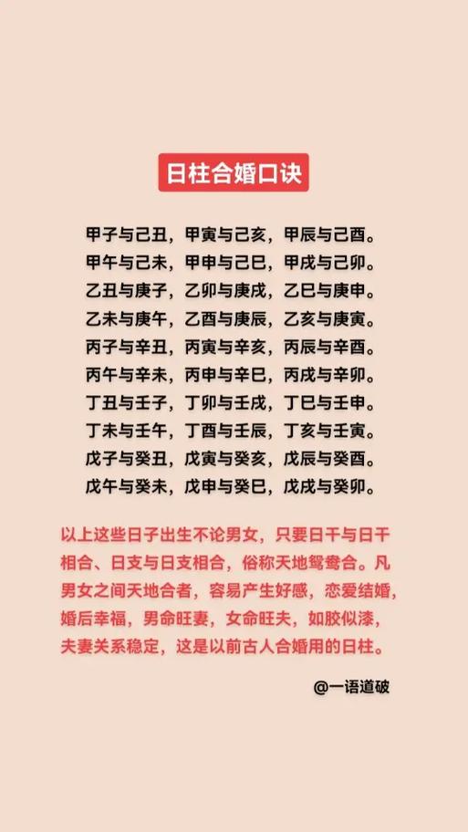 根據(jù)八字合婚口訣判斷兩人命運是否相合,主要通過分析雙方的生辰八字,包括年、月、日、時的天干地支組合關(guān)系。以下是具體步驟:
