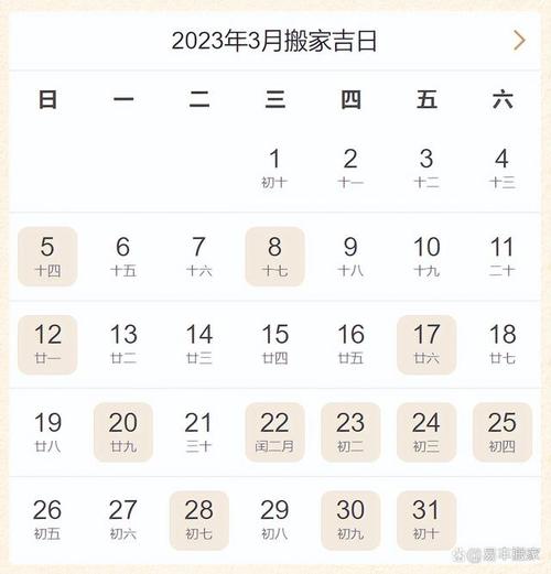 6. 忌諱在特定日子搬家:根據(jù)傳統(tǒng)習(xí)俗,農(nóng)歷三月初七、初九、十五、二十三、二十九等日子不宜搬家。