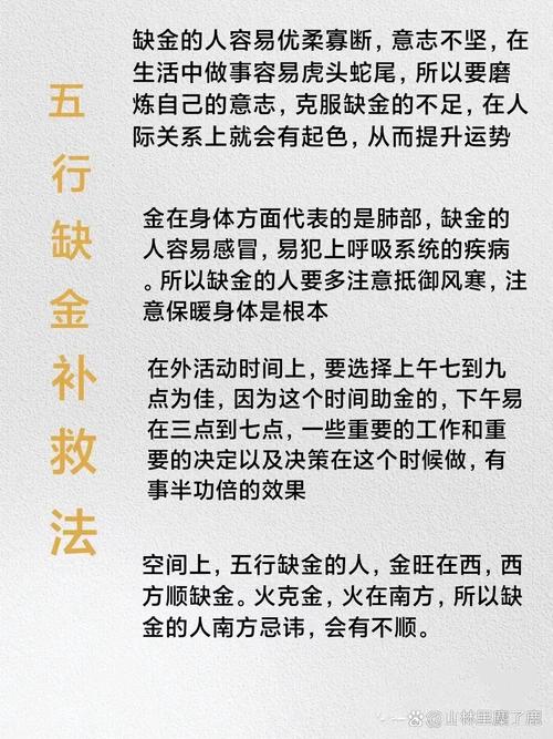 命理講究平衡,土旺偏缺金,則需補金以調(diào)和。五行相生相克,金生水,水泄火,火生土。因此,可在命理中加入水火之物,以生金泄土,達到五行平衡。