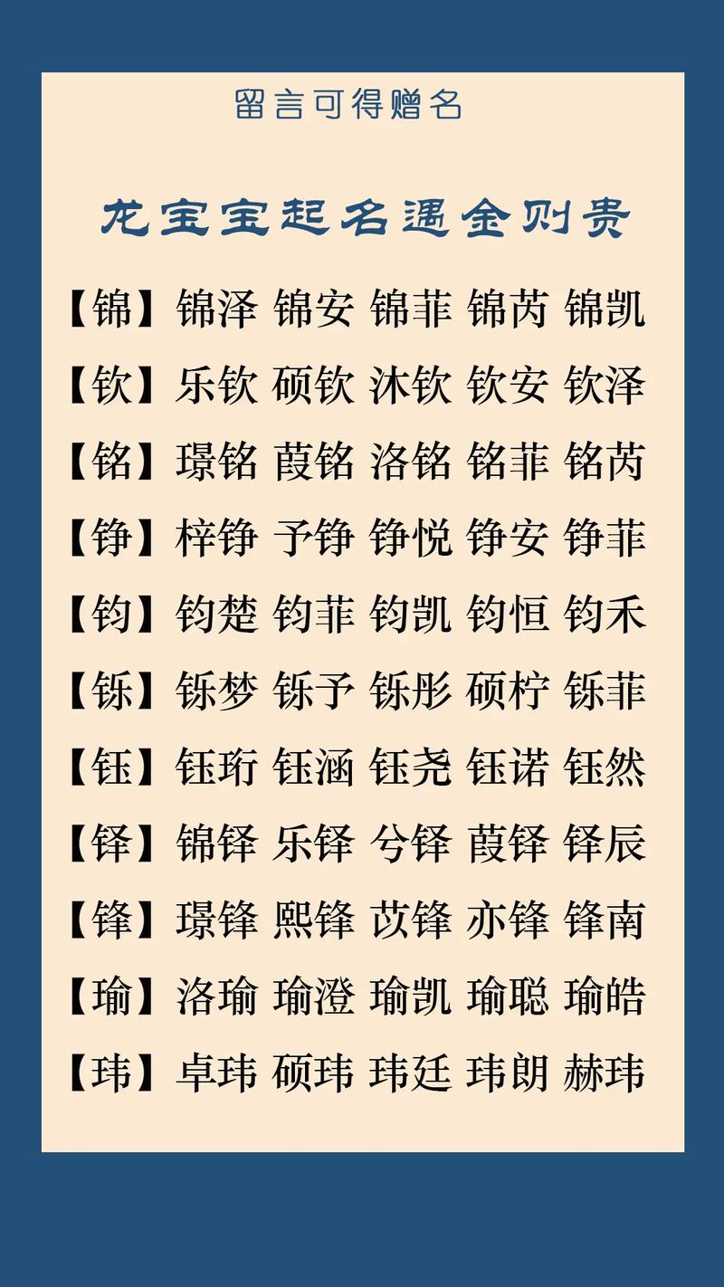 錦(jǐn):本義指有彩色花紋的絲織品,有美好、華麗之意。錦字五行屬金,其部首為金,也帶有水的靈動之感,如錦繡前程,預(yù)示寶寶未來充滿希望。