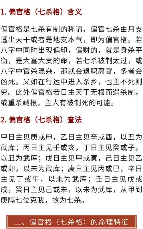 偏官也叫殺,七殺,七煞等六親方面,代表女命之偏夫,男命之兒子七殺與正官功用大體相似,唯須注意的是,正官乃以合作為手段,其性較溫和七殺乃以競爭為手段,其性。八字看正官偏官_文化_人文社科_專業(yè)資料八字看正官偏官正官正官所代表的是一種正統(tǒng)的管束和教育,正官正官所代表的是一種正統(tǒng)的管束和教育,一切對我有八字看正官。