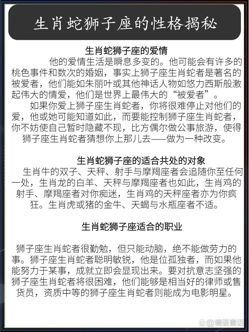 健康方面,本月屬蛇獅子座需要多注意休息,避免過度勞累。上半月可能會(huì)出現(xiàn)腸胃不適的情況,下半月要注意預(yù)防感冒。