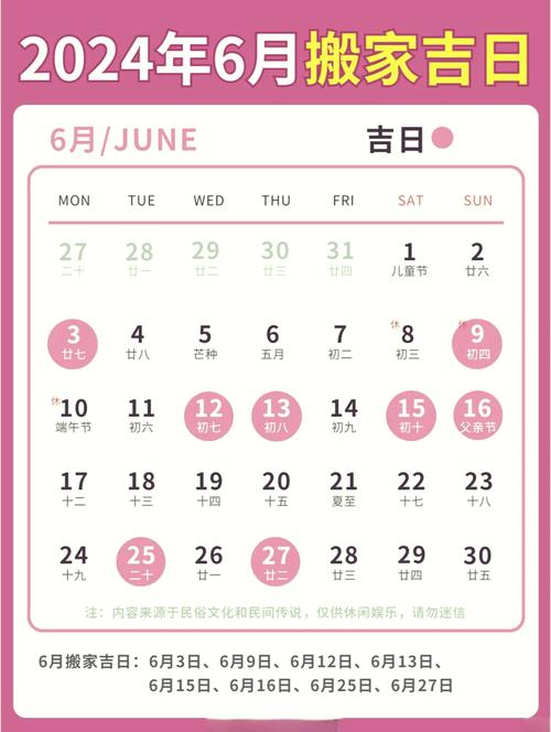 選擇五月或六月的搬家黃道吉日需要綜合考慮天干地支、黃歷宜忌、沖煞及值神等因素。以下是2024年五月和六月適合搬家的黃道吉日,供您參考。