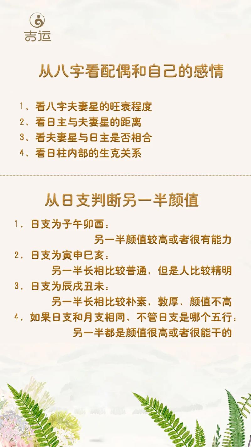 3. 與其他柱的關(guān)系影響婚姻:日支與月支、年支的關(guān)系也會(huì)影響婚姻。若日支與月支、年支相合,婚姻較為穩(wěn)定;若相沖、相刑,婚姻可能不順。