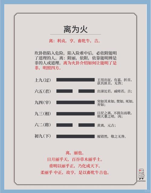 離卦卦象由兩個(gè)離卦組成,離為火,光明,向上之勢(shì)。