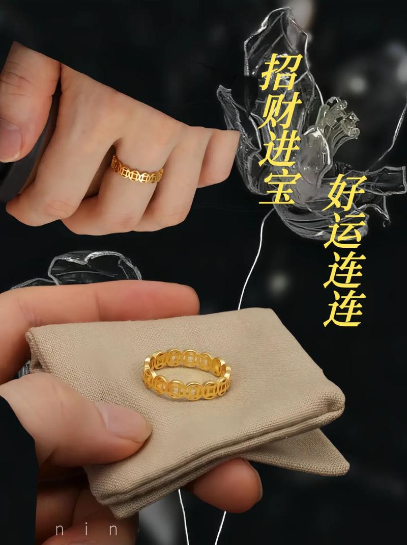 有錢在手黃金戒指:采用古錢幣元素,寓意財富在手,財源滾滾來。