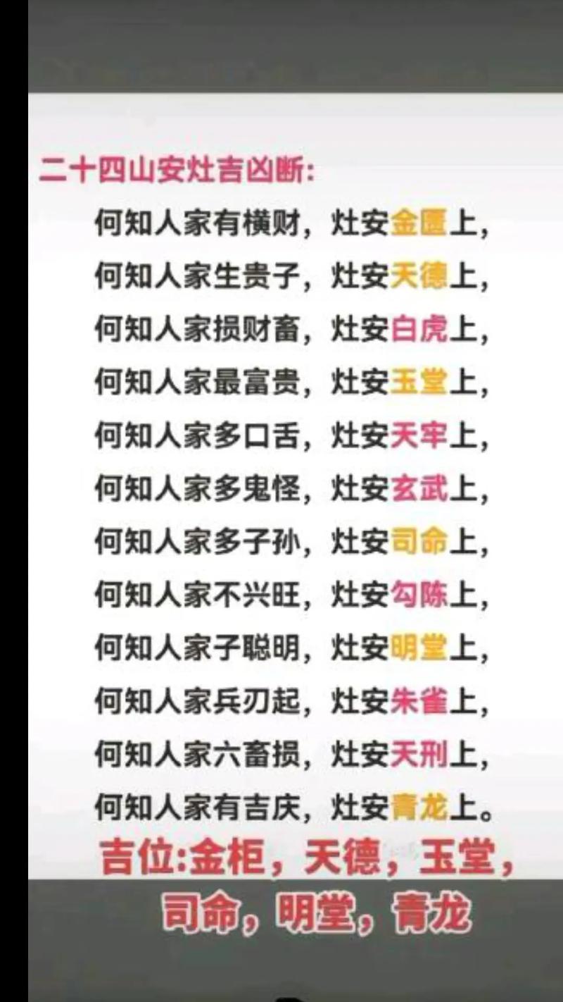 門主灶吉兇直斷歌 灶門朝向口訣圖解