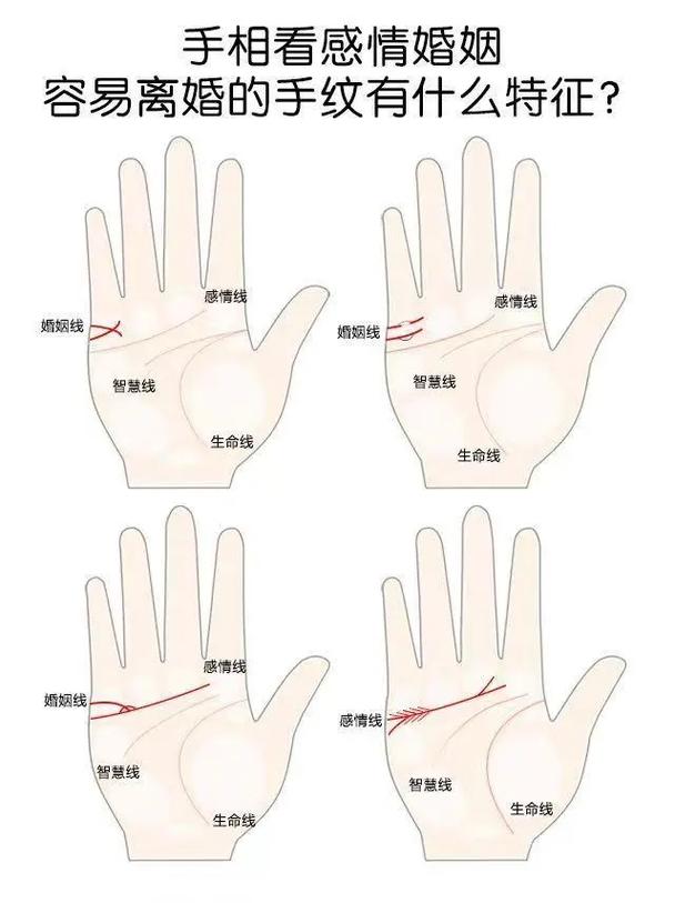 婚姻線的數(shù)量通常暗示婚姻次數(shù)。然而,并非所有婚姻線都代表婚姻,有些可能只是感情糾葛或戀愛關(guān)系。