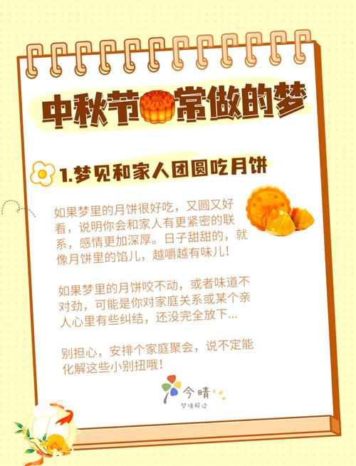 孕婦夢見月餅,也反映了她們對懷孕和生產(chǎn)的焦慮、期待和興奮。月餅作為一種中秋佳節(jié)的傳統(tǒng)美食,蘊含著祈福、團圓的寓意,給予孕婦心理慰藉,減輕孕期壓力。