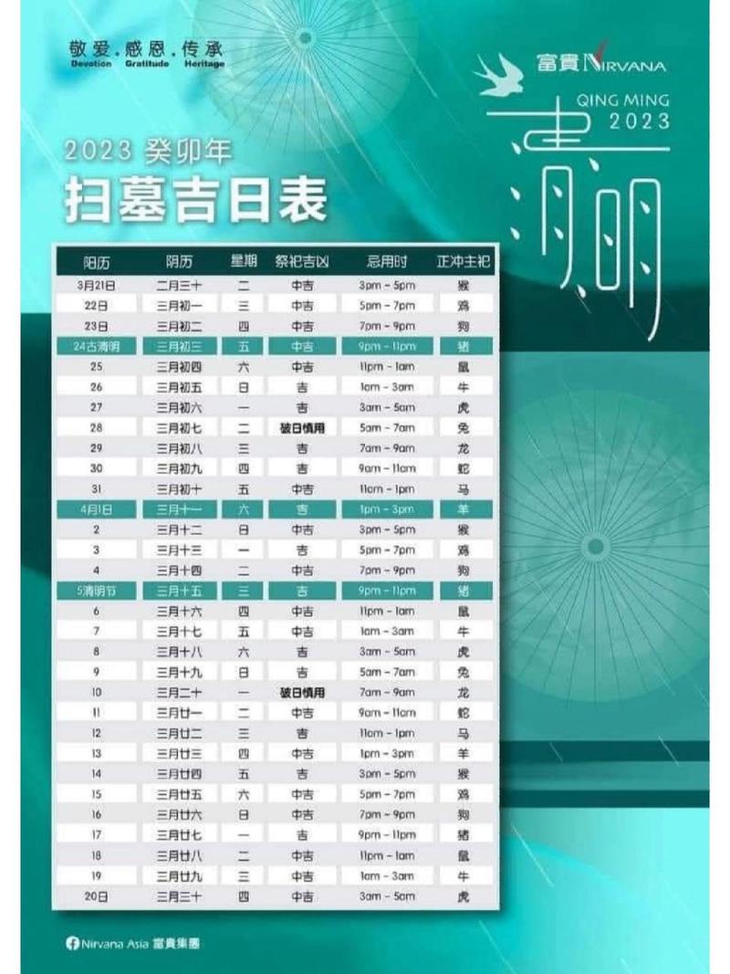 根據(jù)2023年萬年歷,清明節(jié)(公歷4月5日)前后掃墓的黃道吉日如下: