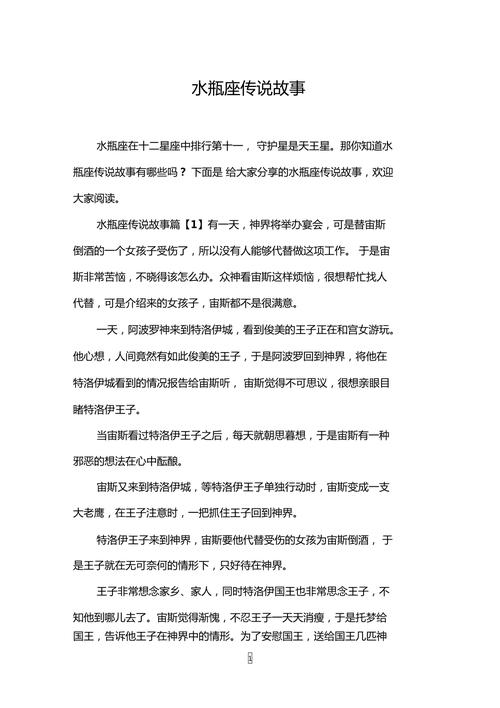 兒童故事水瓶座和王子 王子瑞和萍兒的故事