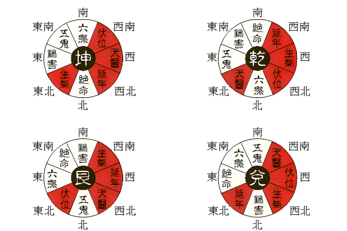 西四宅與八卦方位的關(guān)系主要體現(xiàn)在以下幾個(gè)方面: