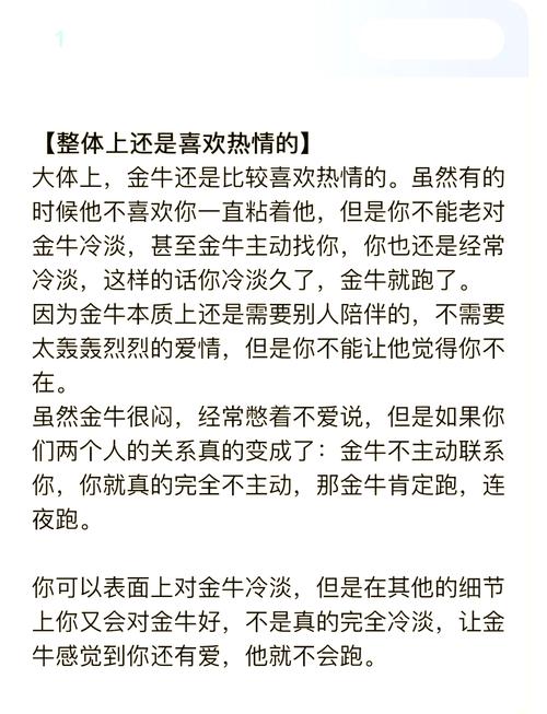 1. 慢熱而深情:金牛座的人通常比較慢熱,在戀愛初期會顯得謹慎和保守。他們需要時間去了解和觀察對方,確保彼此的契合度。