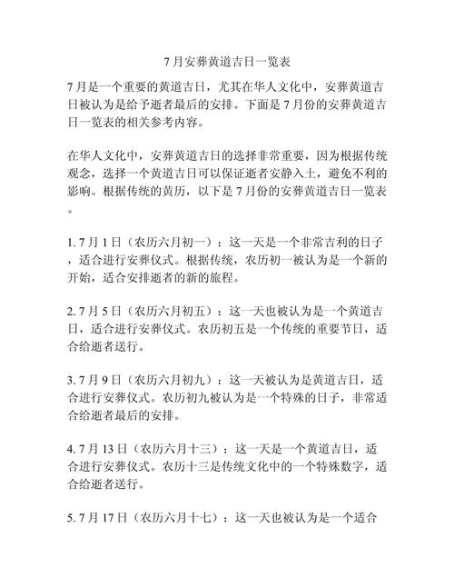七月份下葬黃道吉日一覽表 (七月份下葬黃道吉日一覽表查詢)