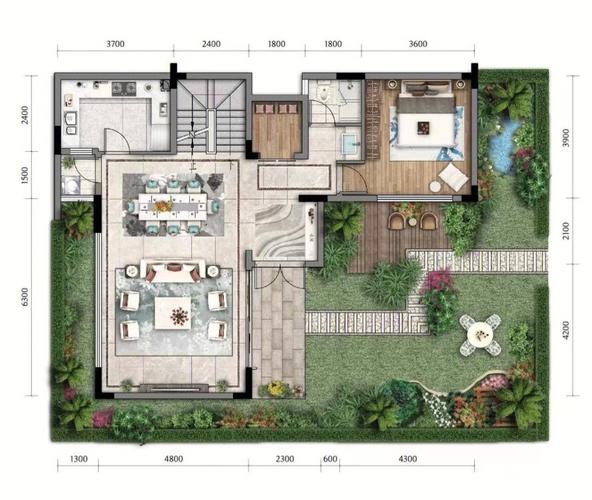 庭院:宜種植花草樹木,營造生機(jī)勃勃的景象。避免種植過于高大的樹木,以免遮擋陽光。(見圖39)