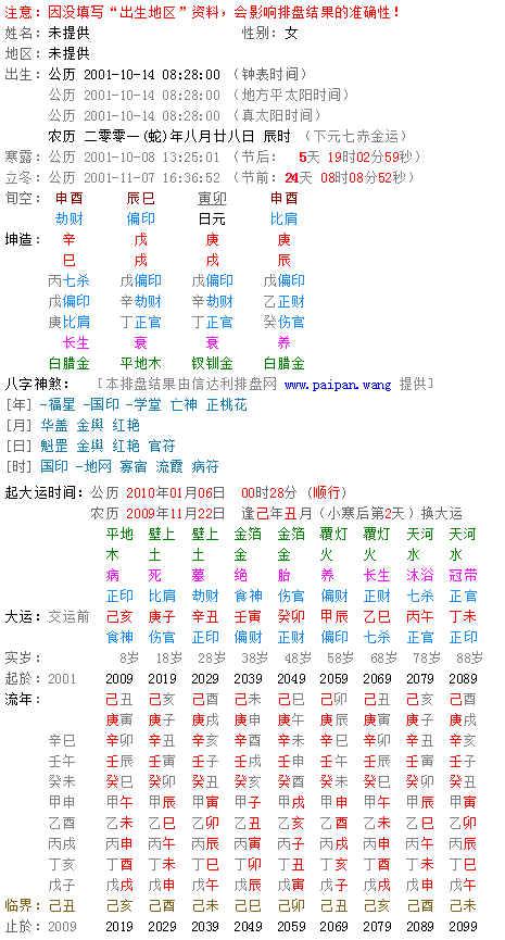 2001年10月以什么命 2001年12月出生的屬于什么命