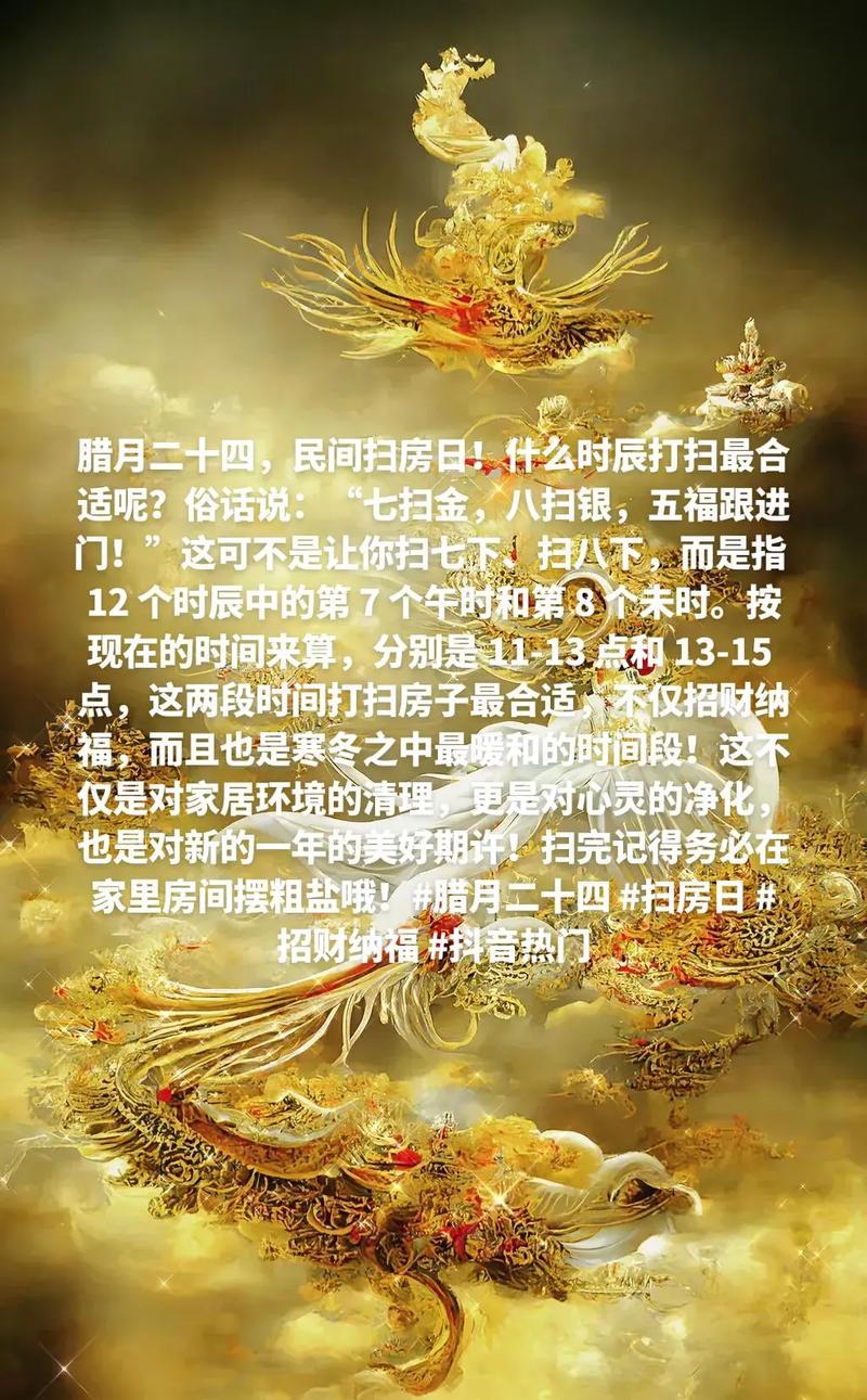 需要注意的是,擇日只是一種輔助手段,更重要的是保持積極的心態(tài),認真對待生活中的每一件事。只要我們用心去做,就能創(chuàng)造美好的未來。 祝愿大家掃房順利,新年快樂!