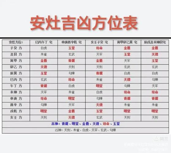 下表列出部分常見二十四山向,及其對應的門、主、灶吉兇方位(僅供參考,具體情況需結合住宅的整體格局和居住者的八字命理綜合分析):