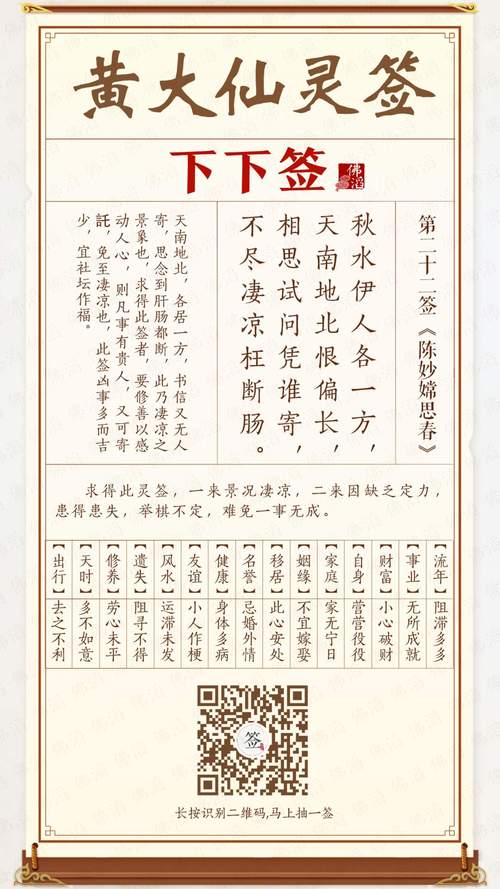 黃大仙靈簽,流傳至今,承載著人們對(duì)未來(lái)的期盼和對(duì)命運(yùn)的探索。這份古老的智慧,并非簡(jiǎn)單的算命工具,而是一套蘊(yùn)含哲理、指引方向的生活指南。本文將深入解讀黃大仙靈簽的簽文,力求以專業(yè)、精準(zhǔn)的視角,剖析其中奧秘,助你撥開迷霧,看清方向。