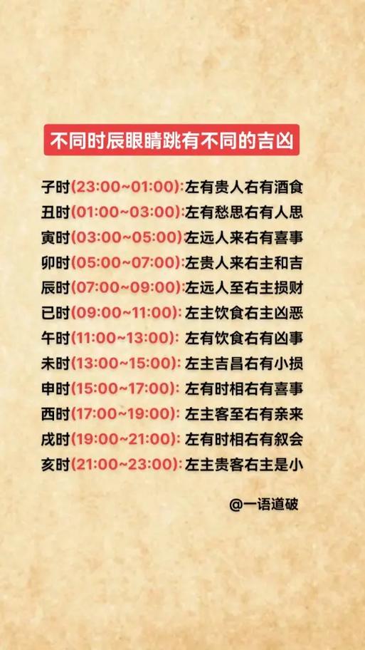 女人右眼角跳測吉兇時辰,是一門古老的民間傳統(tǒng)。掌握了其中的奧妙,便可以趨吉避兇,化災為福,讓生活更加順遂美好。